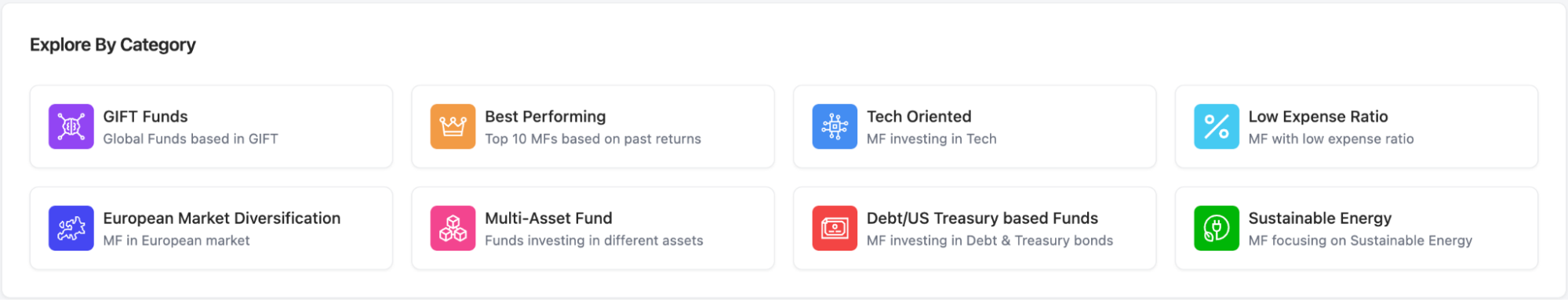 If you’re already using Vested for global investing, simply log in and start investing in the fund right away. If you’re new, you will just need to complete a quick KYC and it’s a simple, one-time process that only takes a few minutes. - Choose “Global Funds” or “GIFT City Funds”