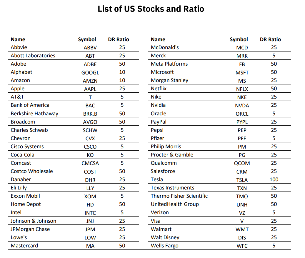 For example, a ratio of 1:50 means that one UDR represents one fiftieth of a share. If Microsoft is trading at $400 in the US market, a single Microsoft UDR would be priced at roughly $8.