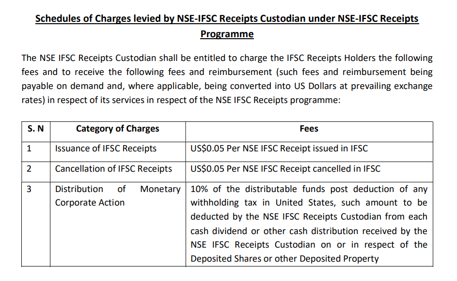 When you buy a UDR, the custodian has to create that receipt against the underlying shares held in custody. For this process, HDFC Bank’s IFSC Banking Unit charges an issuance fee of $0.05 per UDR.