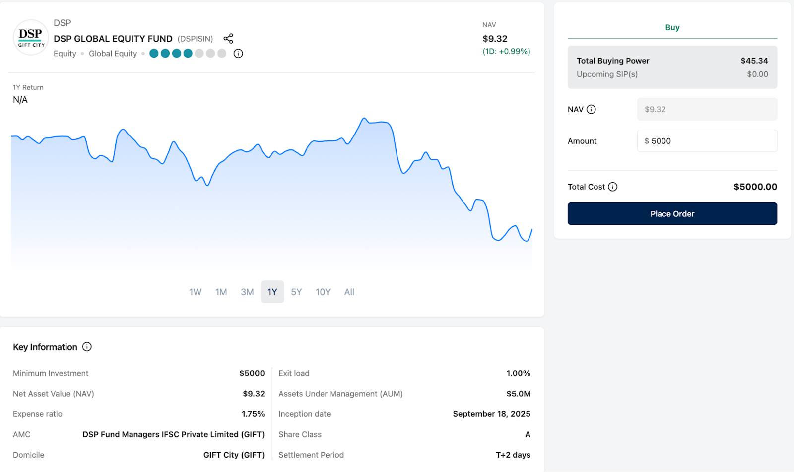 The DSP Global Equity Fund is one of the first retail mutual funds launched from GIFT City and remains a useful reference point for understanding the actively managed structure.