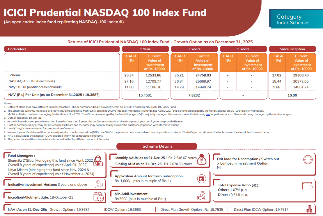 Over the same period, the ICICI Prudential NASDAQ 100 Index Fund delivered 35.21% in INR terms.
