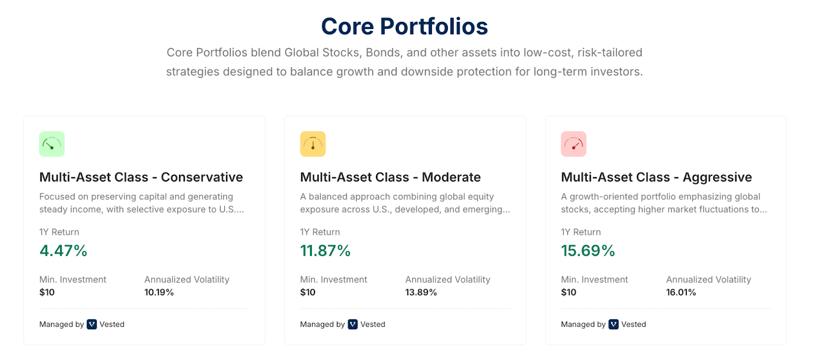 To see how this works in practice, consider the Multi-Asset Class portfolios available on Vested.