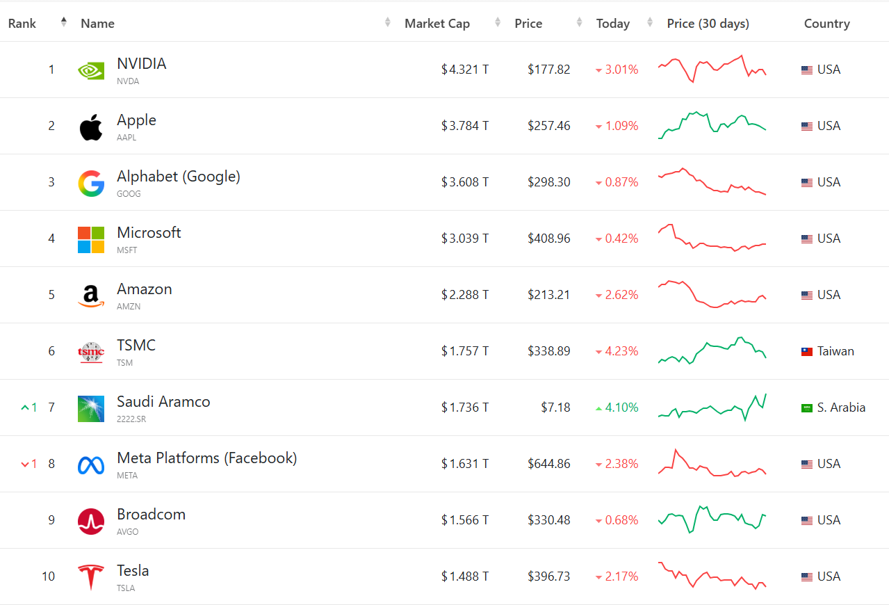 As of 2025, 9 of the top 10 global companies by market capitalisation are US-listed. Many of the dominant players in semiconductors, biotechnology, enterprise software, aerospace, and global luxury are concentrated there.