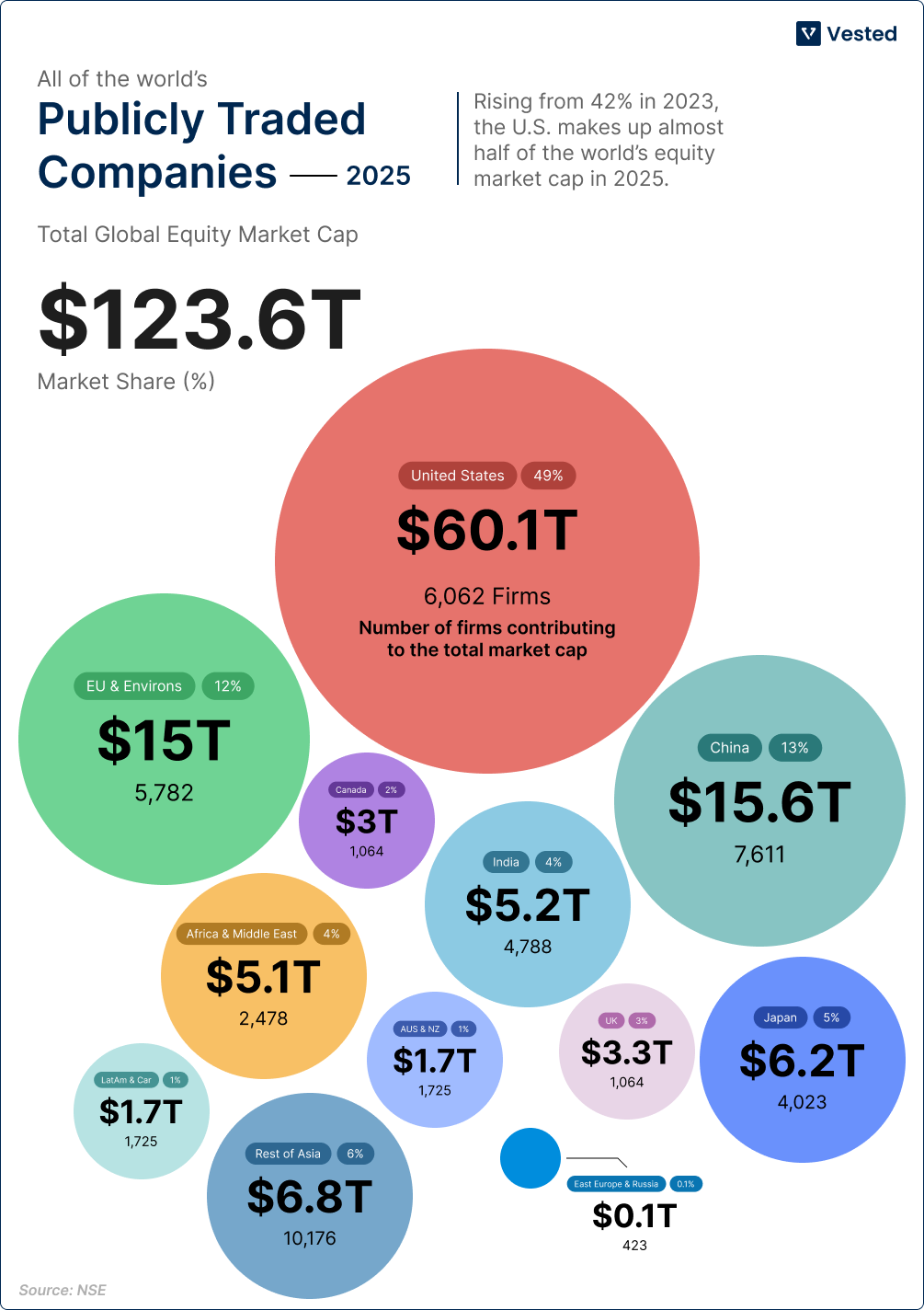 The US has about 4% of the world’s population. It accounts for about 25% of global GDP. And yet it holds 48% of the global market cap.