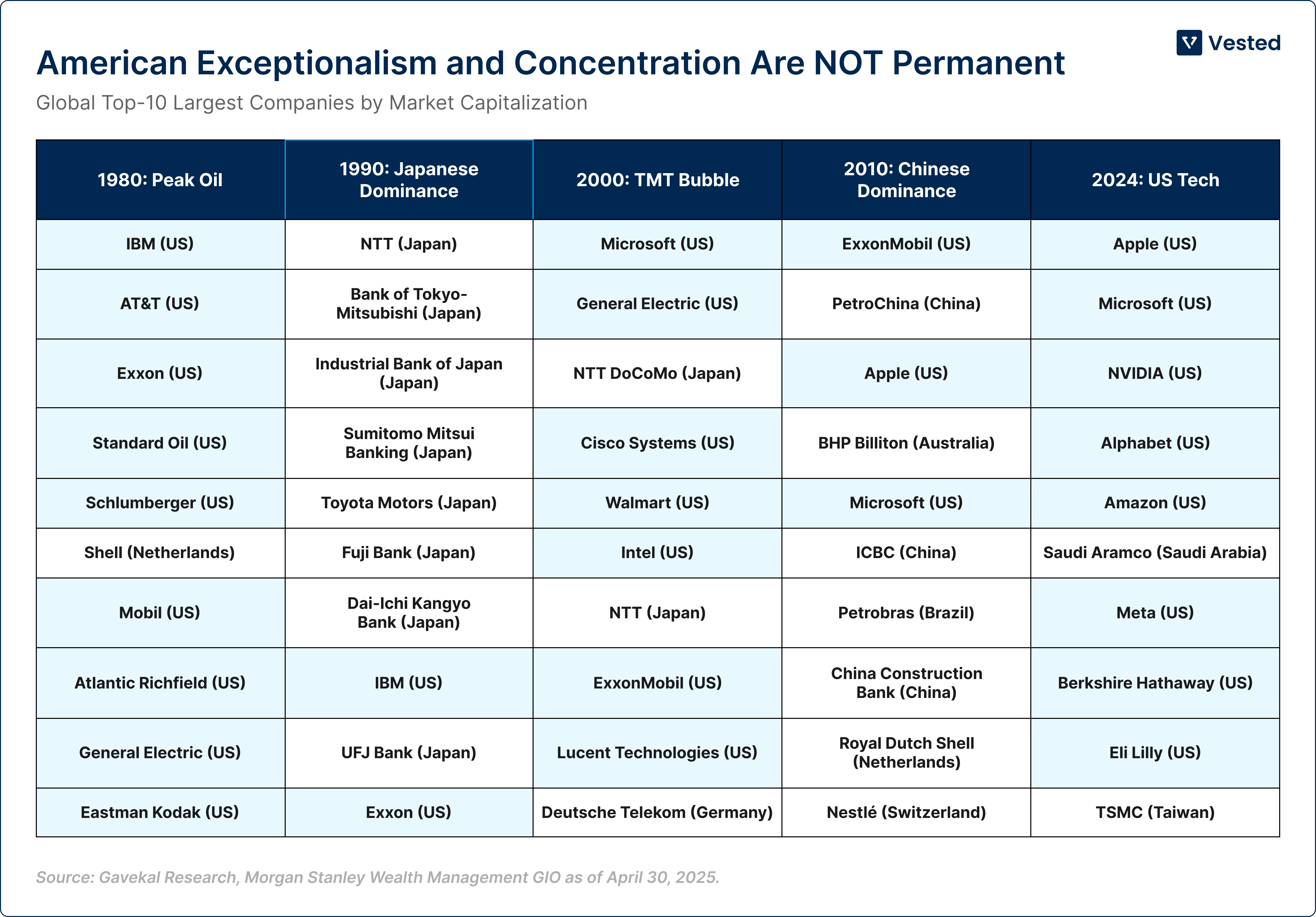 This is one of the most important lessons in all of market history. The largest market in the world is not necessarily the best investment. Size and momentum are not the same thing as value.